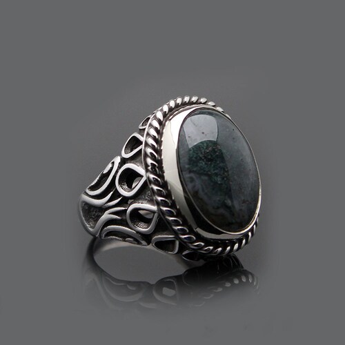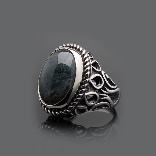- Moss Agate Silver Men Ring, Silver Handmade Jewelry, 925 Sterling Silver, For Men, Green, Moss Agate - Aqeeq