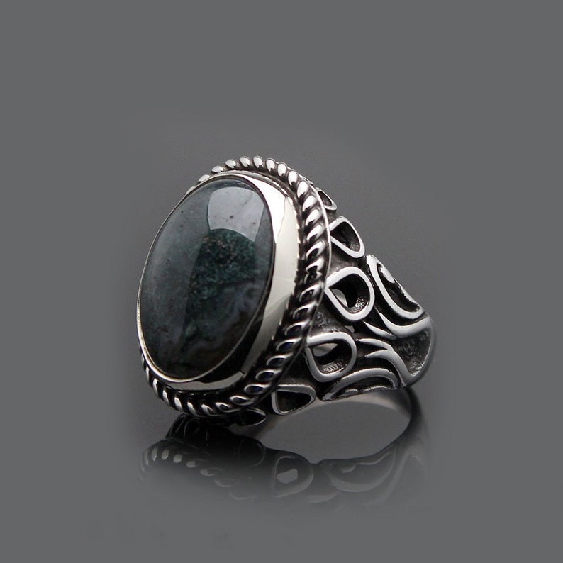 Moss Agate Silver Men Ring, Silver Handmade shops Jewelry, 925 Sterling Silver, For Men, Green, Moss Agate - Aqeeq