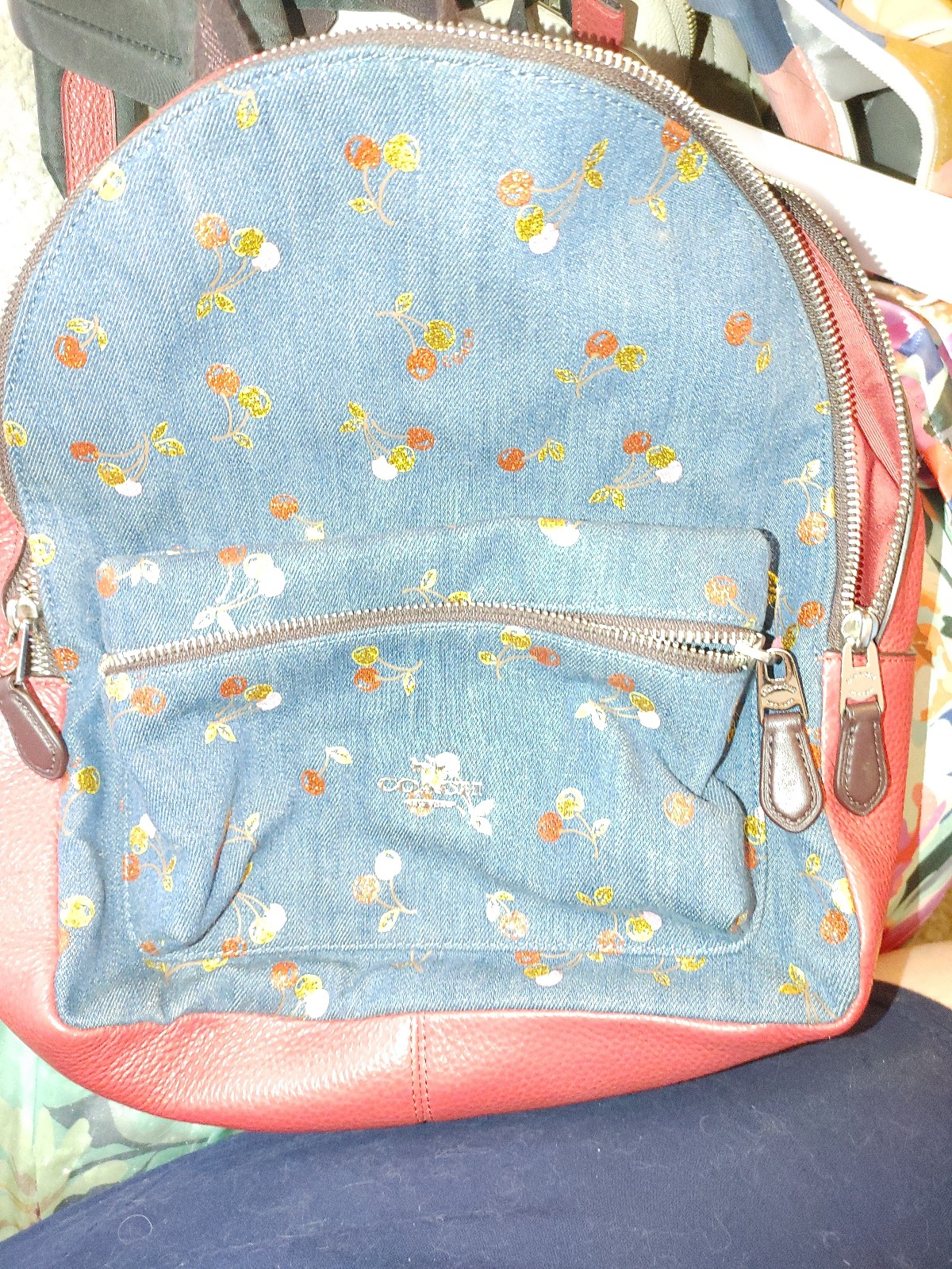 Coach red backpacks with denim shops cherry, Coach red backpacks with denim cherry hot