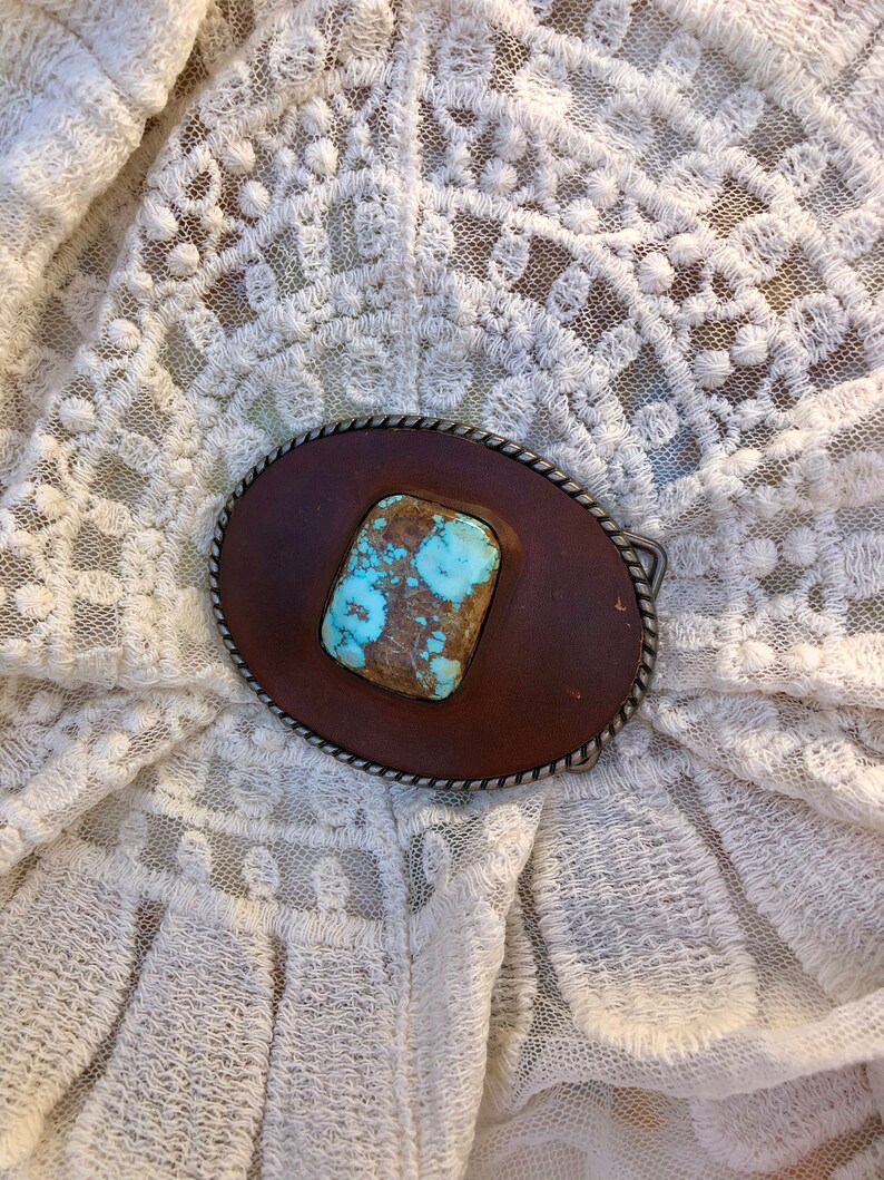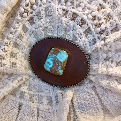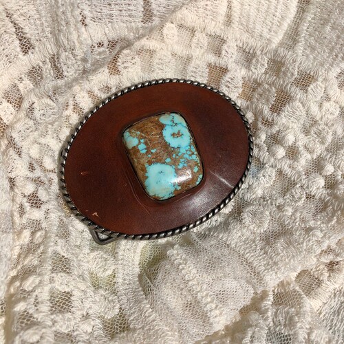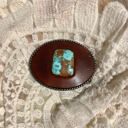 Inlaid Kingsman shops Turquoise Leather Oval Belt Buckle