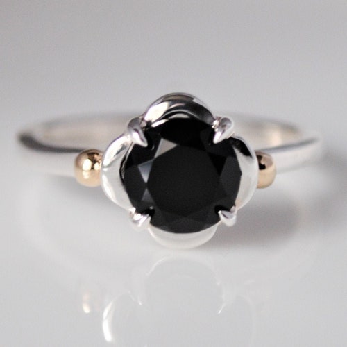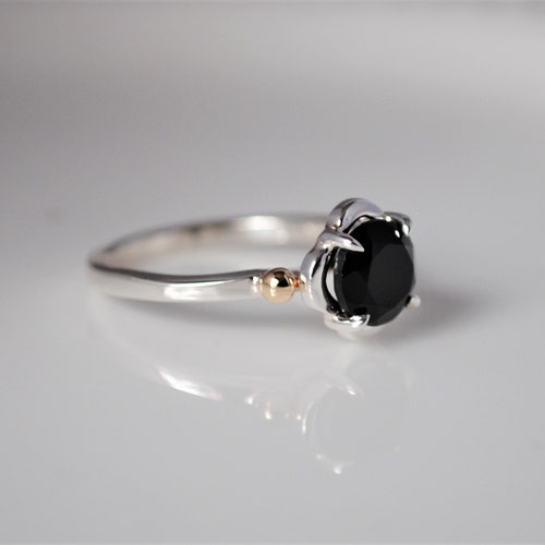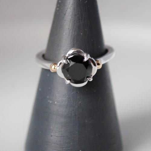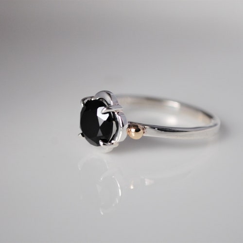 Black shops Spinel Ring-14K Yellow Gold And Sterling Silver, Black Spinel Ring-14K Yellow Gold And Sterling Silver newest