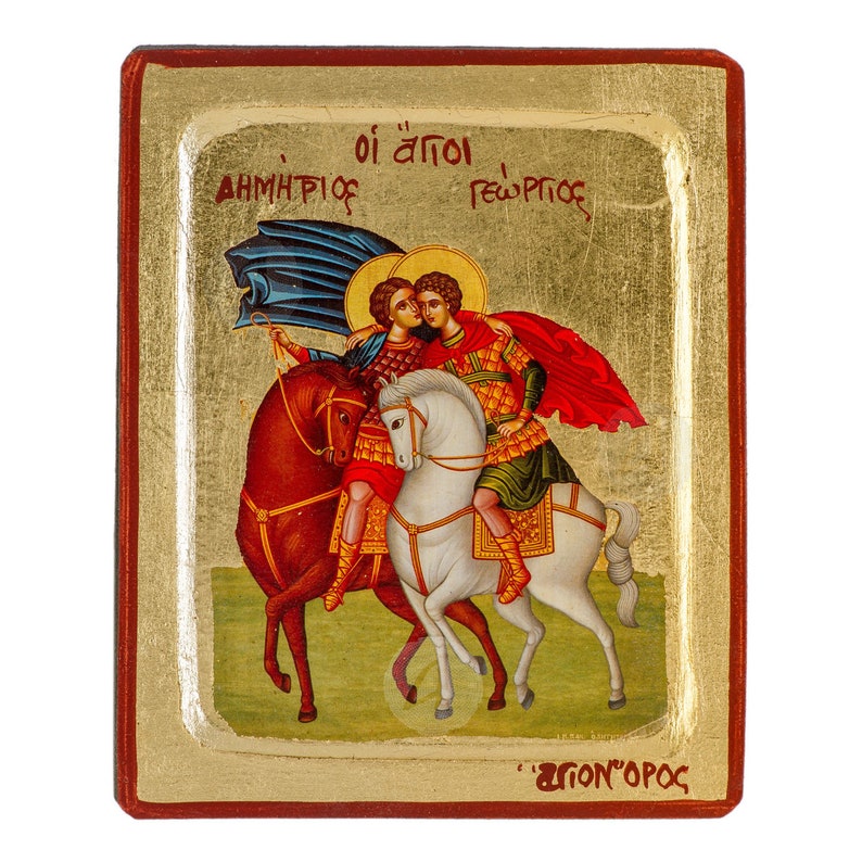 Saints shops Demetrius & George Handmade Icon Gold Leaves plated Lithography (icon) of Saints Demetrios and George with real gold leaf in MDF.