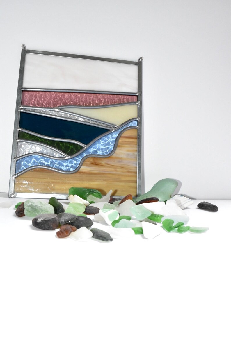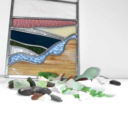 Stained glass shops abstract beach panel, Stained glass abstract beach panel factory