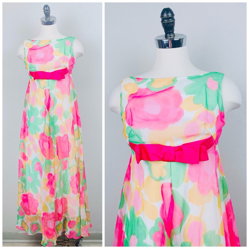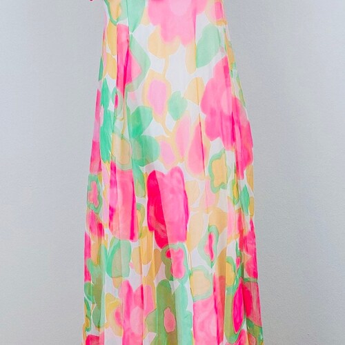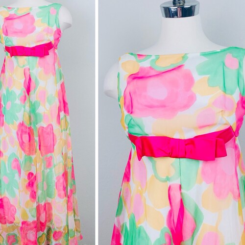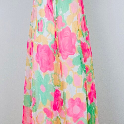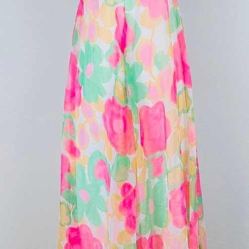 1960s Vintage Pink and Green Silk Flower Power Jumpsuit / 60s Empire Waist Palazzo Pant Playsuit shops / Small - Medium, 1960s Vintage Pink and Green Silk Flower Power Jumpsuit / 60s Empire Waist Palazzo Pant Playsuit / Small - Medium saving