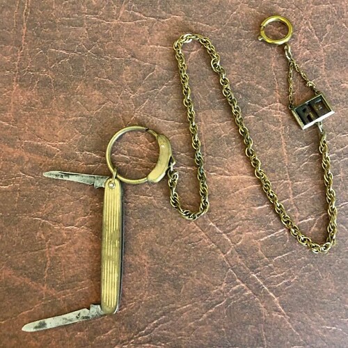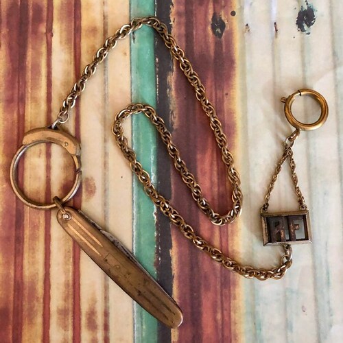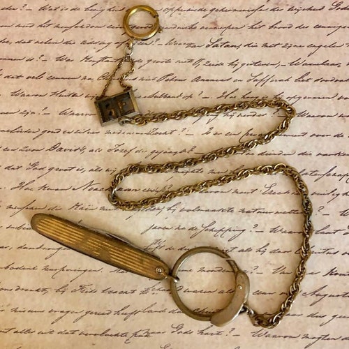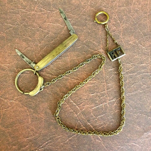 Vintage Watch Fob Chain with shops Knife 987, Vintage Watch Fob Chain with Knife 987 selling