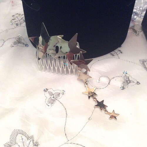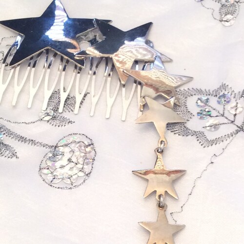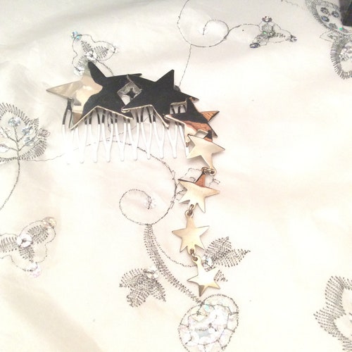- Authentic Vintage SEVEN 7 FALLING STARS Sterling Silver 925 Hair Comb, Wedding, Bride, Bridesmaid, Prom, Birthday, Gift, Present, Ball.