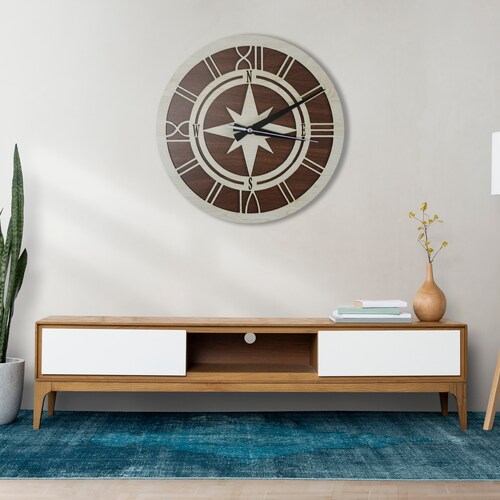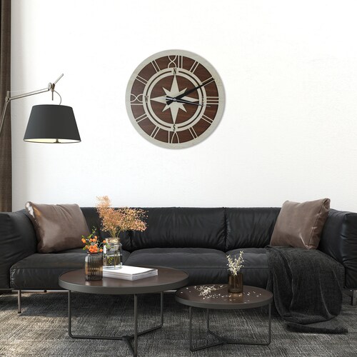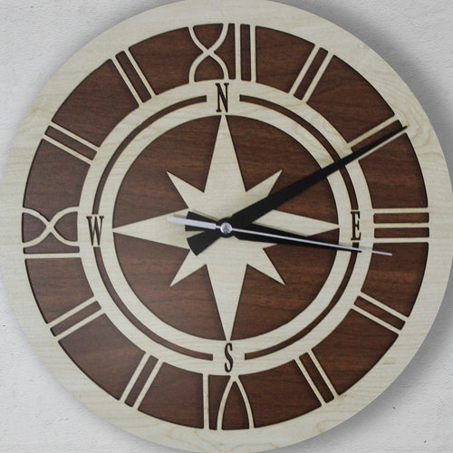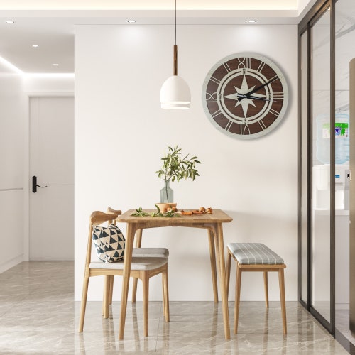 - Modern Wall Clock,Sundial Compass,Brass Compass,Compas Clock,Direction Finding,Wooden Wall Clock,Room Wall Clock,Wood Retro Wall Clock Decor