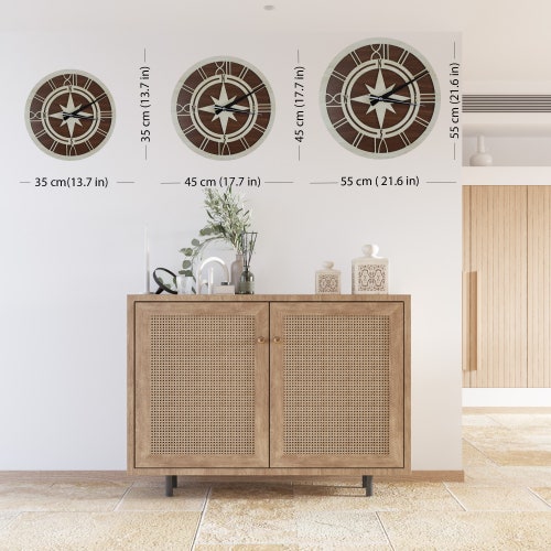 Modern Wall Clock,Sundial Compass,Brass Compass,Compas Clock,Direction Finding,Wooden Wall Clock,Room Wall shops Clock,Wood Retro Wall Clock Decor