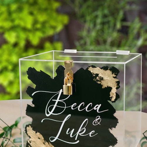 Foil Painted Lock and Key Personalized Acrylic Card Box I Painted Card shops Box with Lock | Wedding Money Box | Wedding Card Box | Card Box