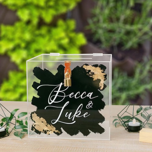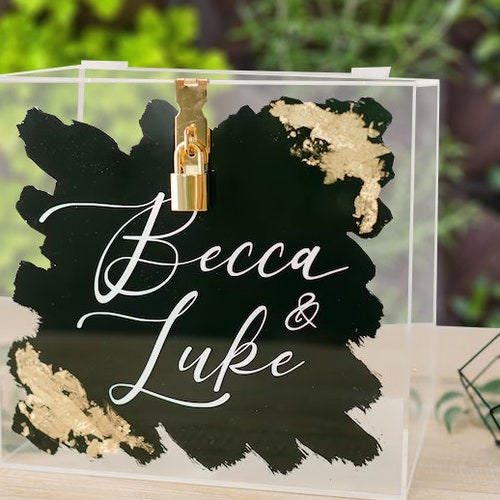- Foil Painted Lock and Key Personalized Acrylic Card Box I Painted Card Box with Lock | Wedding Money Box | Wedding Card Box | Card Box
