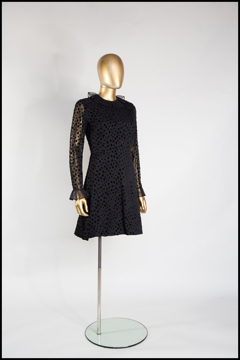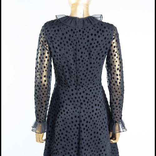 Vintage 1960s Black Devore Dot Ruffle shops Mini Dress With Sleeves - Size Small - Free shipping Worldwide, Vintage 1960s Black Devore Dot Ruffle Mini Dress With Sleeves - Size Small - Free shipping Worldwide shipping
