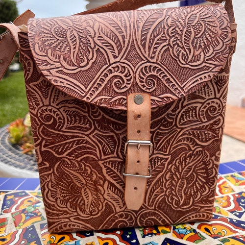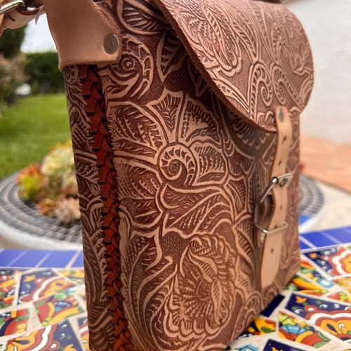 Hand crafted tooled leather shops crossbody, Hand crafted tooled leather crossbody shipping