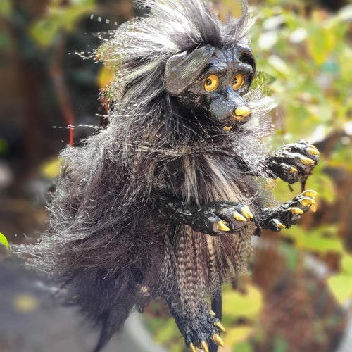 Each puppet is made with resin or PLA plastic, high quality Faux fur, hand painted with acrylics and sealed with varnish or modge podge for strength. However you should not be mean to your puppet. The birds have real feather wings and tails. We help our puppets stay secured on your shoulder with earth magnets on the puppet and a lightweight metal plate under your clothes.