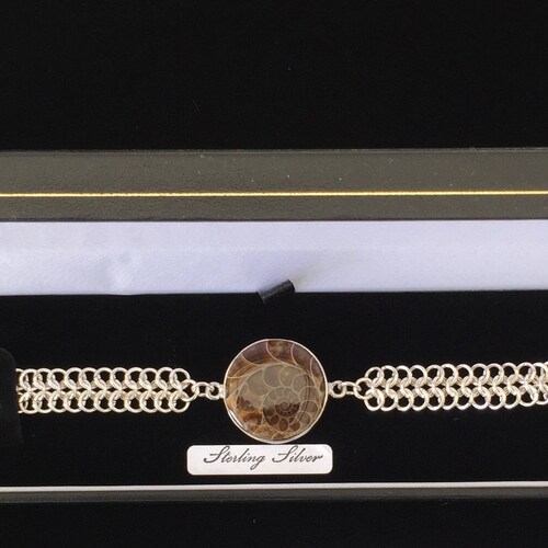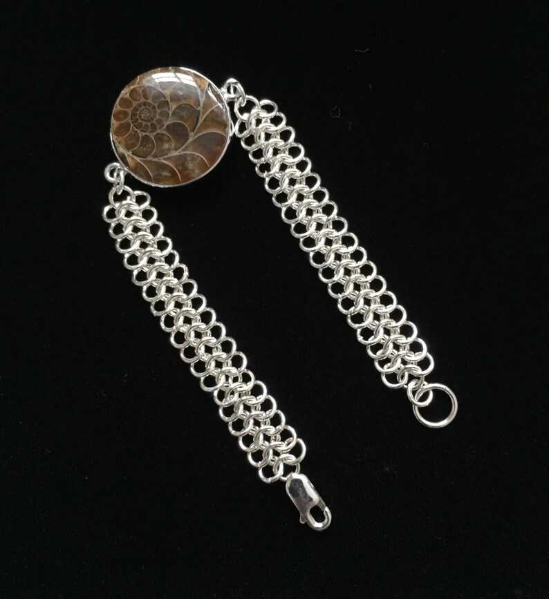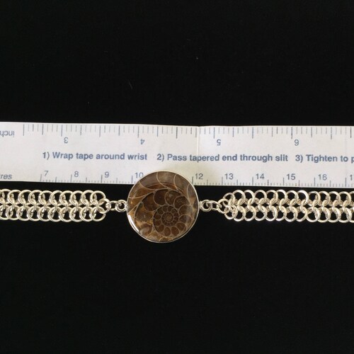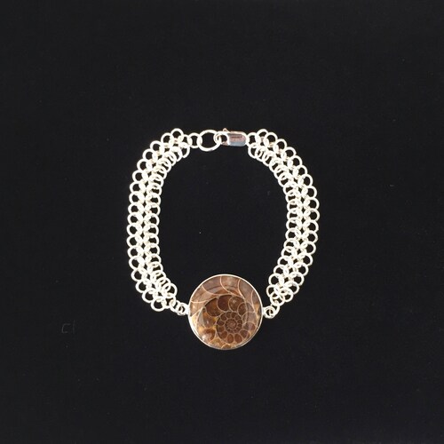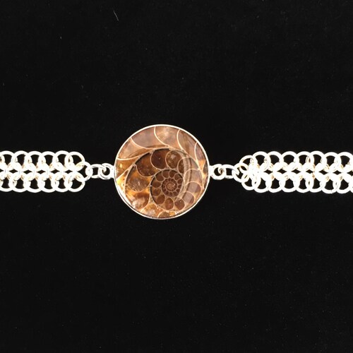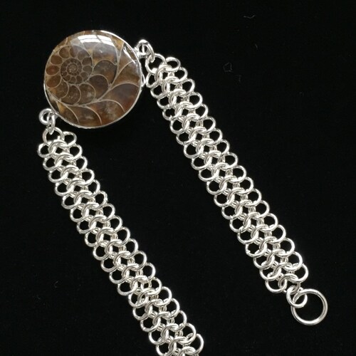 Ammonite Fossil Bracelet shops Sterling Silver Chain Maille Bracelet with an Ammonite Fossil