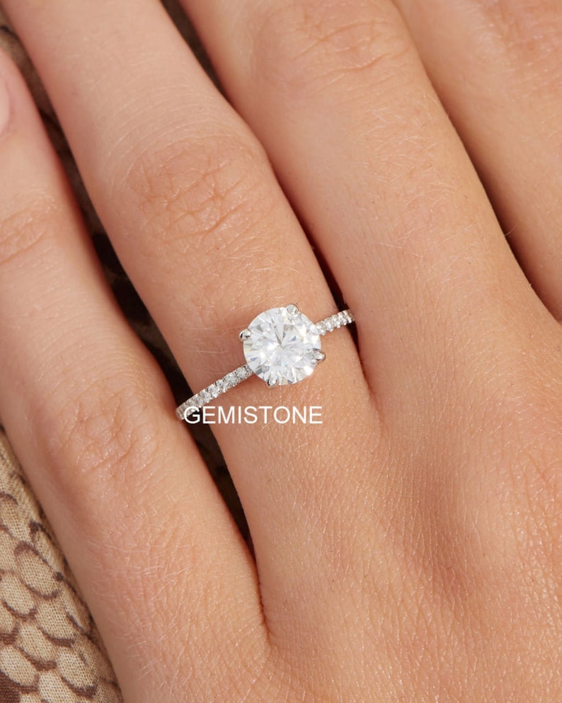- 2.50 CT Round Cut Moissanite Ring, Round Moissanite Engagement Ring, 14K White Gold Wedding Ring, Solitaire Accented Ring, Anniversary Ring