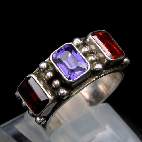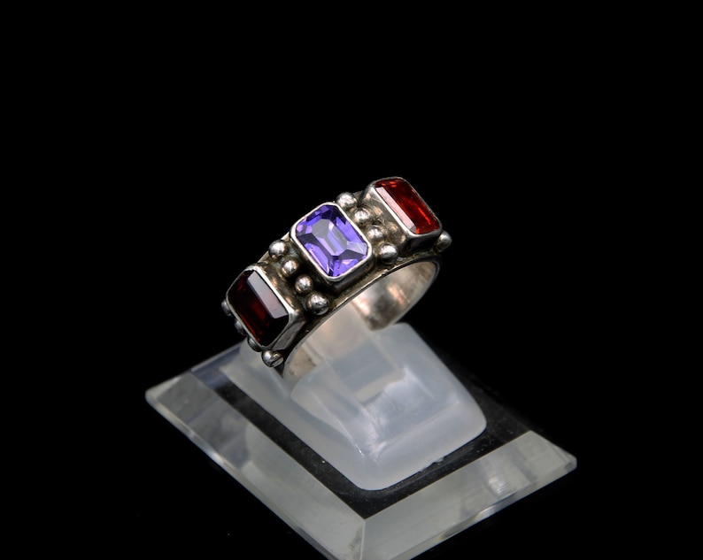 Signed KumKum Sweden 925 Sterling Silver Three Stone shops Multi Colored cz Band Ring, Signed KumKum Sweden 925 Sterling Silver Three Stone Multi Colored cz Band Ring fashion