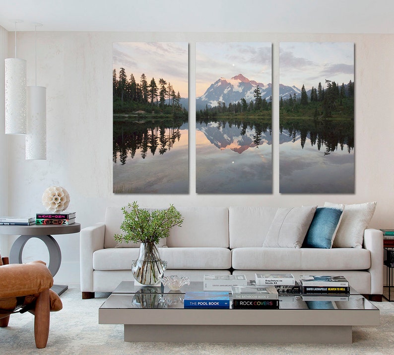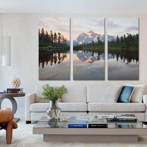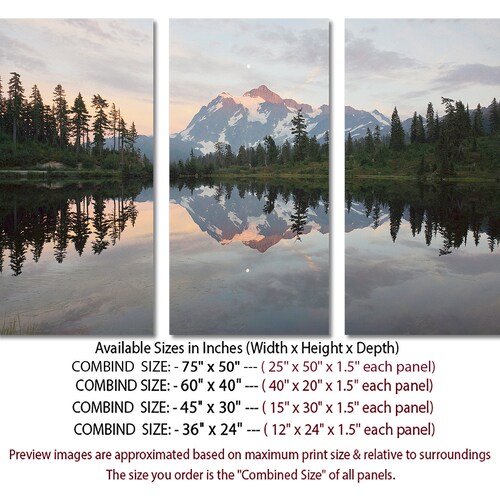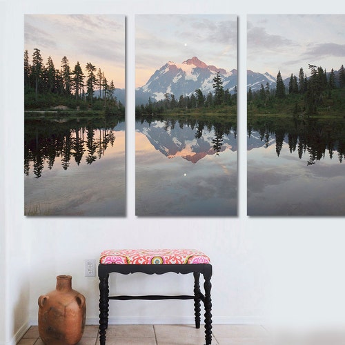3 Panel Split (Triptych) Canvas Print. 1.5" deep frames, Beautiful Mountains and Lakes, for interior room shops decor, room decor. 3 Panel Split (Triptych) Canvas Print. 1.5" deep frames,Beautiful Mountains and Lakes, for interior room decor, room decor.