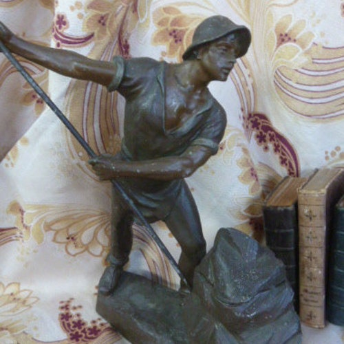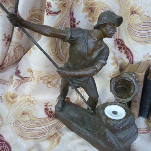 Antique 19th Century French Patinated Spelter Figure Inkwell of a Quarry Man shops Miner, Antique 19th Century French Patinated Spelter Figure Inkwell of a Quarry Man Miner high quality