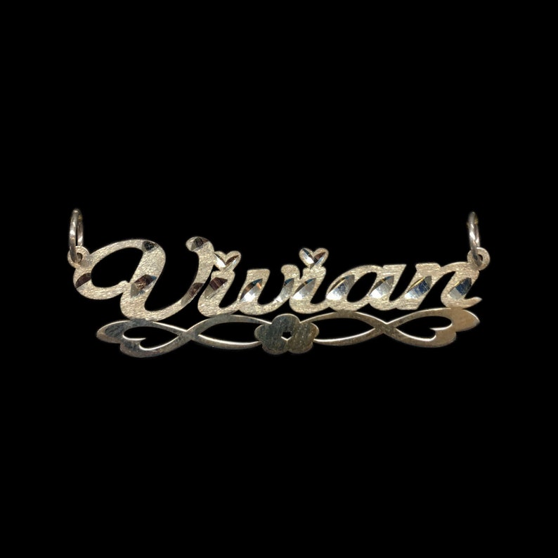 10K Solid Gold Exclusive Handmade shops Nameplate with Flower