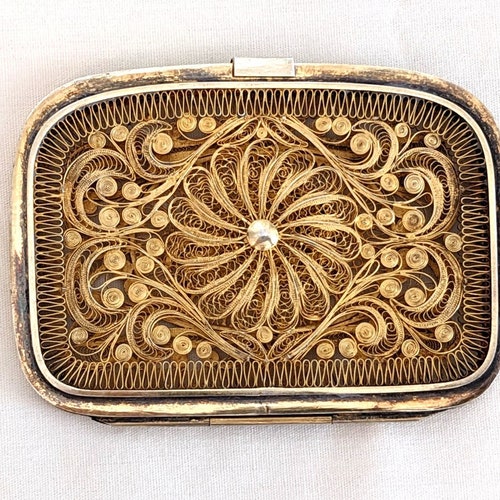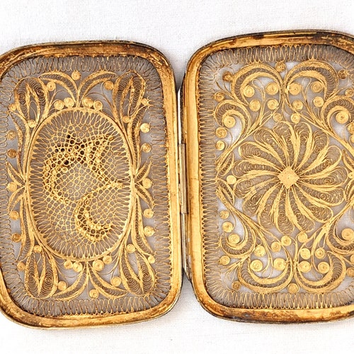 Shops Gilt silver filigree calling card case; 3 x 2 1/8 x 1/8 inches, 26.6 grams