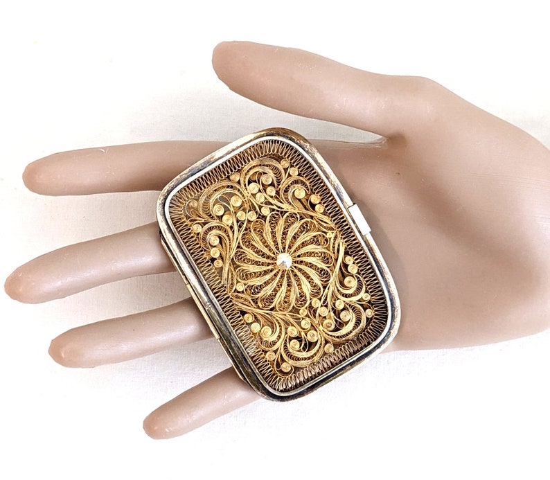 Shops Gilt silver filigree calling card case; 3 x 2 1/8 x 1/8 inches, 26.6 grams, Gilt silver filigree calling card case; 3 x 2 1/8 x 1/8 inches, 26.6 grams factory