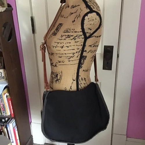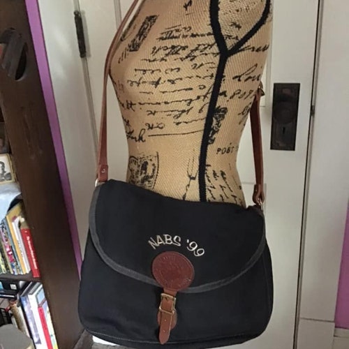Vintage 1990's Crossbody Bag (Dated shops '99) *Duluth Pack-Duluth Minn.* Black Canvas Brown Genuine Leather, Vintage 1990's Crossbody Bag (Dated '99) *Duluth Pack-Duluth Minn.* Black Canvas Brown Genuine Leather newest