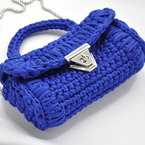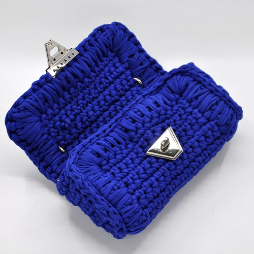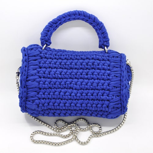 - Hand Woven Bag | Handmade Bag | Knitted Bag | Hand Knitted Bag | Womens Bag | Sax Blue Bag