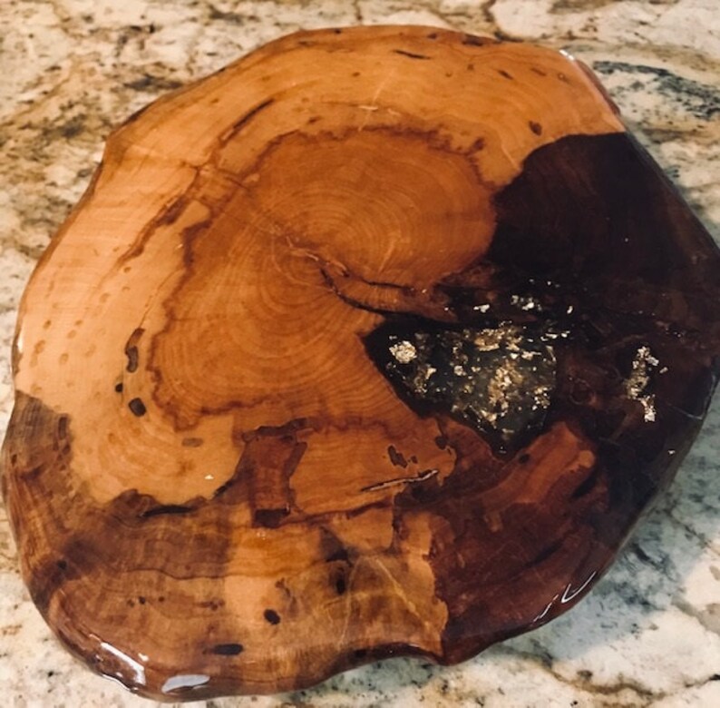 - Handmade Epoxy Olive Wood w/Gold Flake Live Edge Charcuterie Serving Board, Meat & Cheese Board, 100% Food Safe