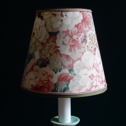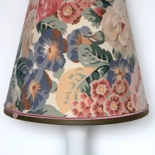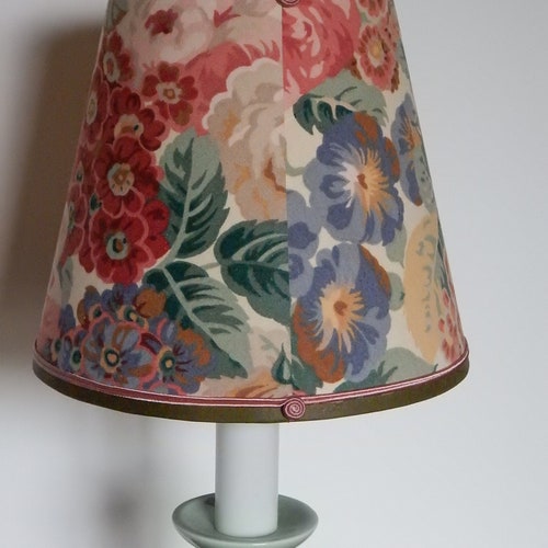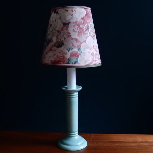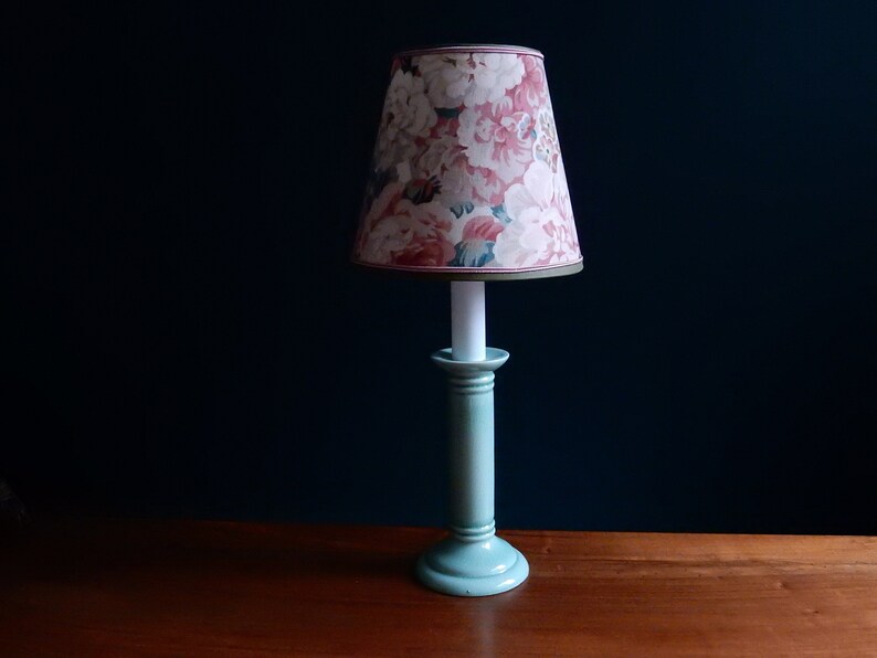 Table lamp / Green shops ceramic candlestick foot / Conical lampshade in English floral fabric / French artisanal creation