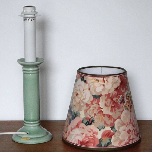 - Table lamp / Green ceramic candlestick foot / Conical lampshade in English floral fabric / French artisanal creation
