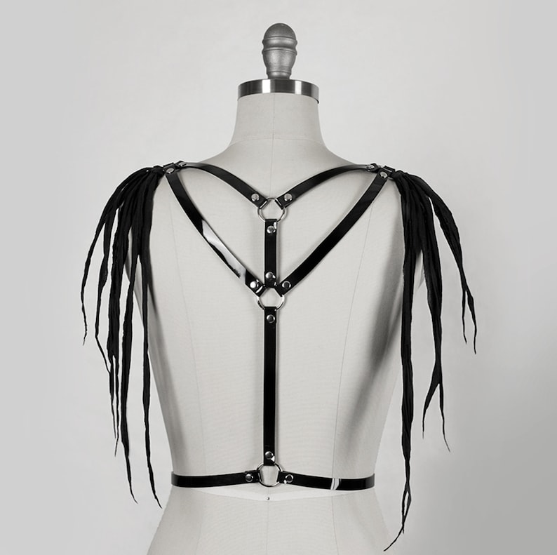 - WRAITH SHOULDER HARNESS - Post Apocalyptic Harness Belt - Pvc Vinyl - Shredded Gauze - Gothic Wraith Fashion - Deathrock - Wasteland