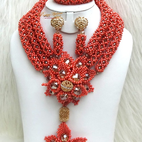 PrestigeApplause Unique Elongated shops Orange Design Bridal Wedding Beads Bridal Party Jewellery Set