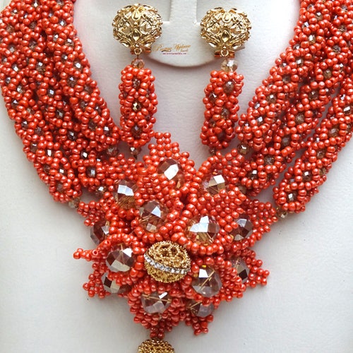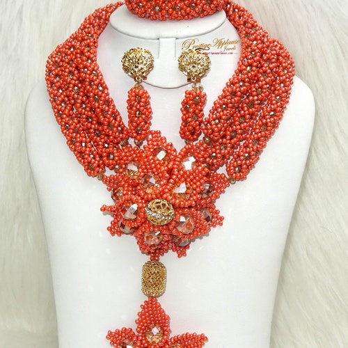 PrestigeApplause Unique Elongated shops Orange Design Bridal Wedding Beads Bridal Party Jewellery Set, PrestigeApplause Unique Elongated Orange Design Bridal Wedding Beads Bridal Party Jewellery Set retailer