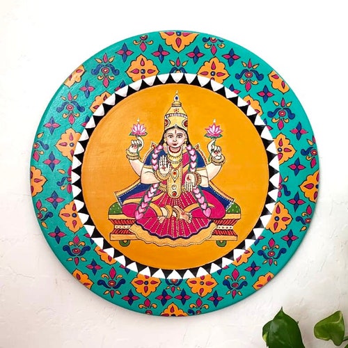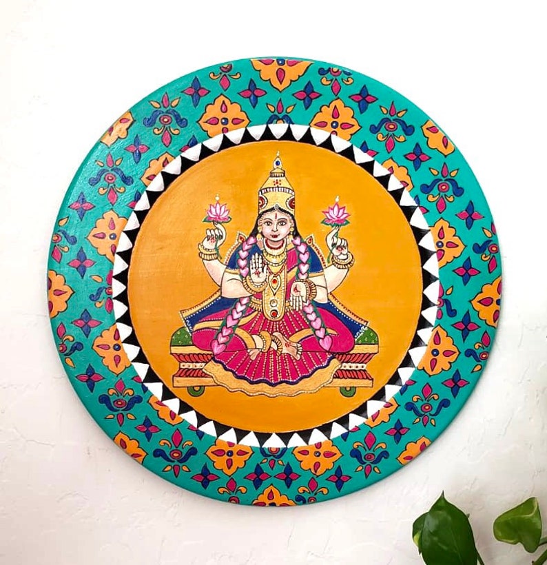Shops Tanjore Goddess lakshmi painting wall art rangoli traditional festival diwali navratri decor pooja room decor Wall plaque tray