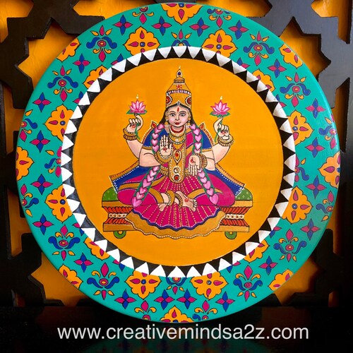 Shops Tanjore Goddess lakshmi painting wall art rangoli traditional festival diwali navratri decor pooja room decor Wall plaque tray *****original art********do not copy***********