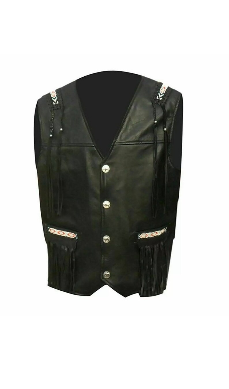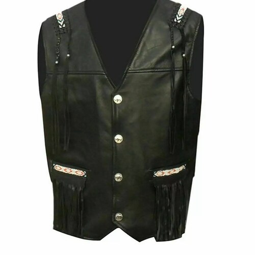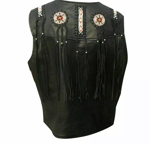 Men Cowboy shops Indian Western Native American Black Leather Vest Or Waistcoat With Aztec And Fringes Men Cowboy Indian Western Native American Black Leather Vest Or Waistcoat With Aztec And Fringes