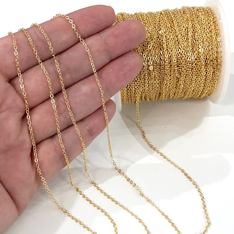 100 Meters Bulk 1,5X2mm shops 24Kt Gold Plated Brass Cable Chain, Gold Plated Soldered Chain