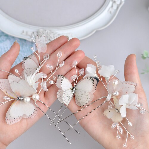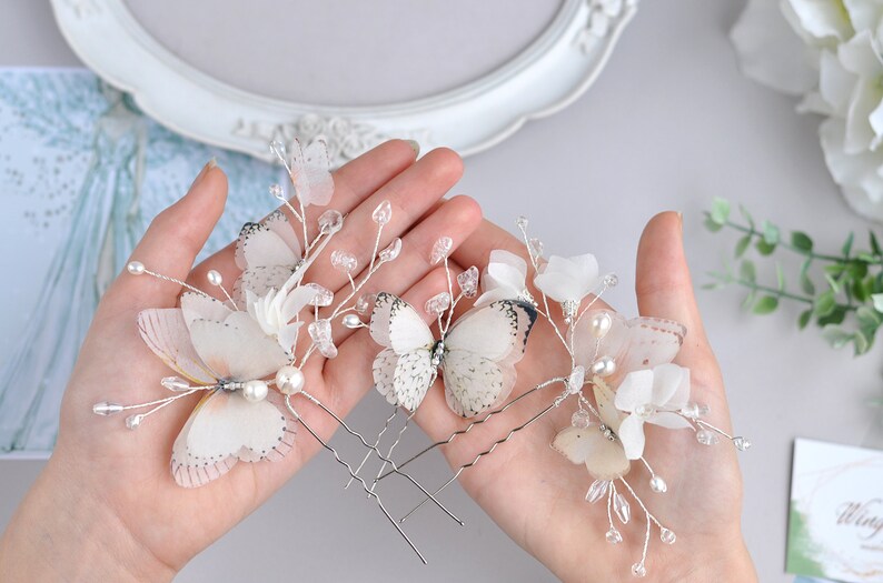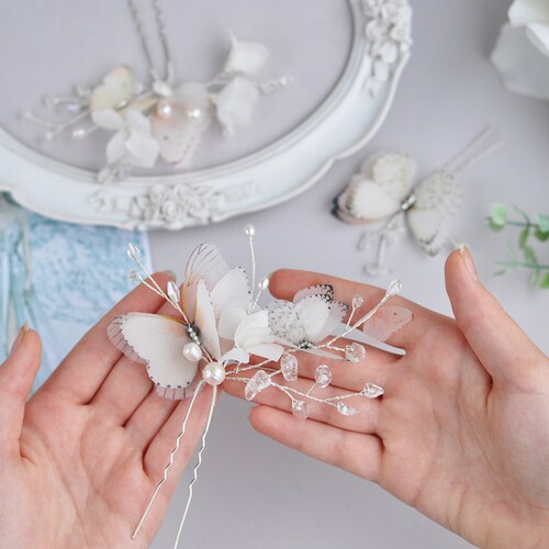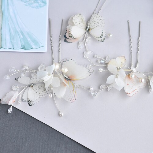 Butterflies hair piece Flower hair pins Wedding Hair Accessories Flower Hair Vine Bridal Hair Piece Ivory silk flower Wedding shops Hair Clips A set of delicate hair pins made from silk butterflies and flowers. Can be use all pieces of or in any combination.