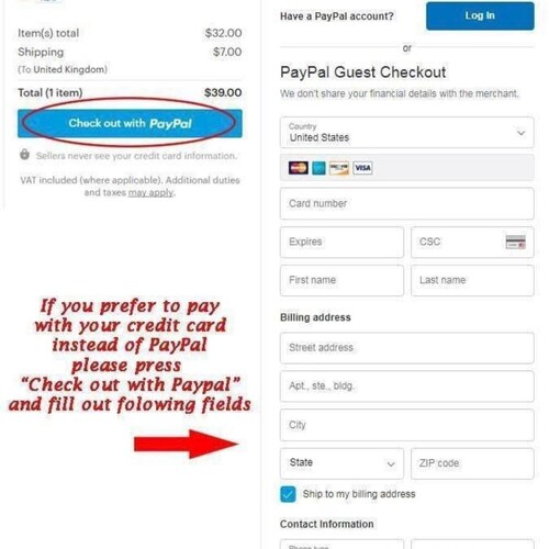 Items will be sent to the address registered on your Etsy account (► NOT your Paypal address). Please ensure that you Etsy address is correct and updated before check out as it is not possible to retrieve or stop the package once sent. Any refund/re-delivery fee due to incorrect/inaccurate address will be borne by buyer. Refund/re-delivery can only be done upon receipt of the returned package.