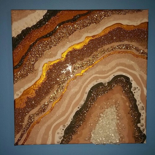 - Cream And Gold Geode Acrylic, Glass, And Resin Painting, 2 Piece Set, Geode, Stone, Gem, Crystal, Hand Painted Canvas Art, Wall Decor