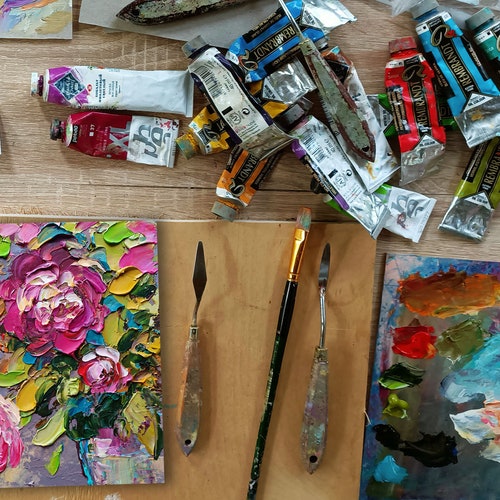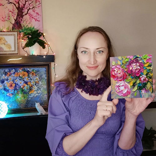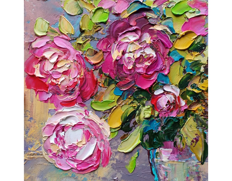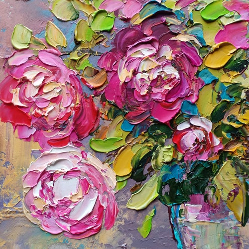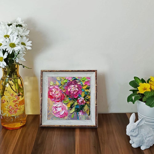 Peony Painting Floral Original Art Flowers Small Painting Impasto 8 by 8" by shops Natalia Shiriaeva, Peony Painting Floral Original Art Flowers Small Painting Impasto 8 by 8" by Natalia Shiriaeva sell