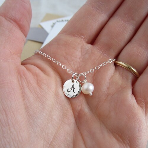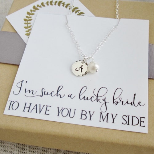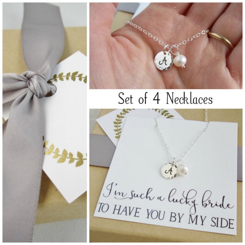 Bridesmaid necklace Set of 4 FOUR Bridesmaid shops gift set, custom silver initial necklaces, freshwater pearl necklace, bridesmaid jewelry, Bridesmaid necklace Set of 4 FOUR Bridesmaid gift set, custom silver initial necklaces, freshwater pearl necklace, bridesmaid jewelry fashion