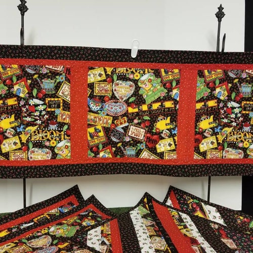 Mary Engelbreit placemats and runner in a larger size. Each mat is 18 x 16 inches. Runner is 45 x 16.5 inches. Both are two shops sided. Customize, Mary Engelbreit placemats and runner in a larger size. Each mat is 18 x 16 inches. Runner is 45 x 16.5 inches. Both are two sided. Customize collections