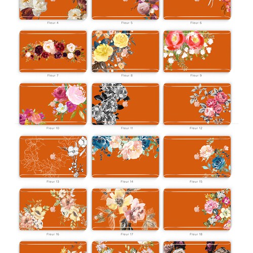 7. New!! - Add a touch of elegance with a Floral Overlay (Fleur 1, Fleur 2, ....) and if you wish to include it in the Outer top, Outer Bottom , Inner area ( and/ or )