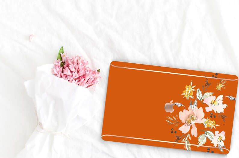Light Burnt Orange Flowerly Collection Macbook Case . Macbook Hard Case and Rose Gold . Macbook Pro 13 Case . Monogram . shops Macbook Pro 16"