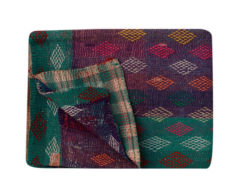 - Vintage kantha quilt,vintage sari quilt,blanket,handmade quilt,twin size quilt,bed cover,recycled kantha,reversible quilt,Ethnic quilt 3908