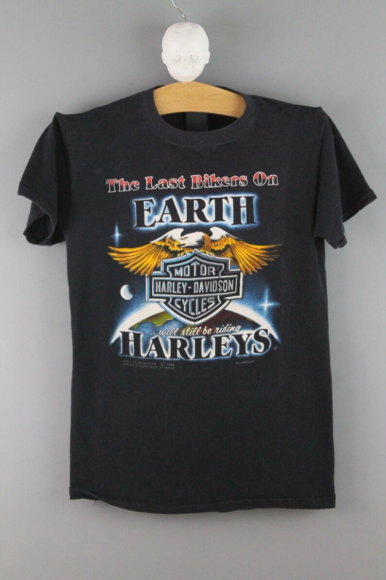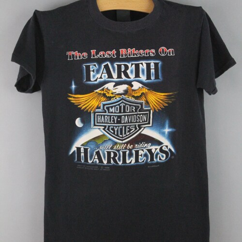 - Harley Davidson Vintage Tshirt/tee Harley Motorcycle Eagle Bar shield logo, RARE LAST BIKERS 80s soft faded biker/tee distressed paper thin
