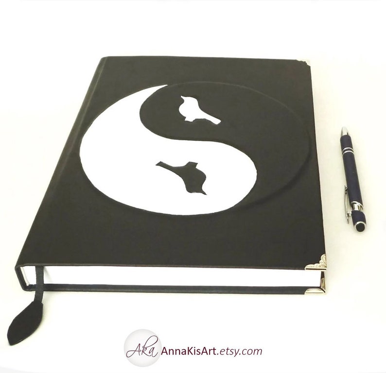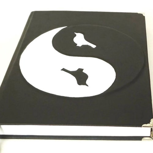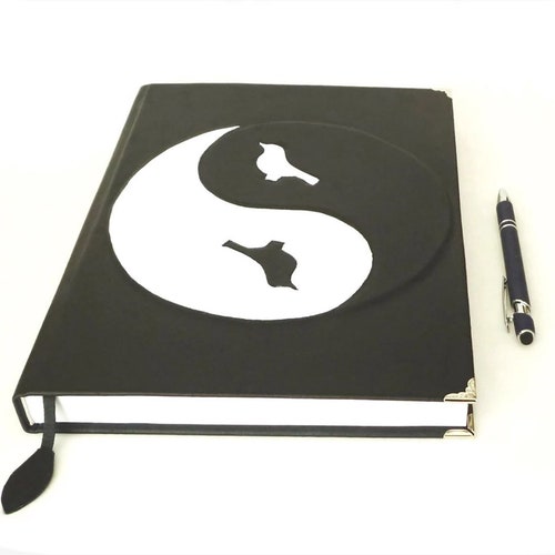 - Black White Leather Journal A4 Birds Notebook Unique Gift