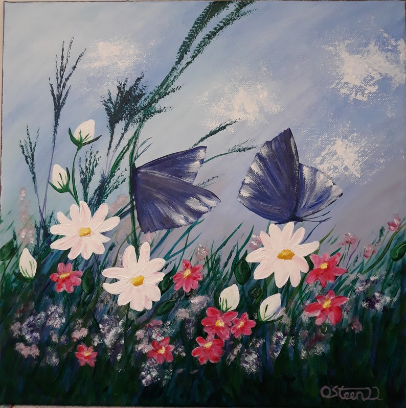 Butterflies and shops Daisies - original Acrylic painting, Butterflies and Daisies - original Acrylic painting discounts
