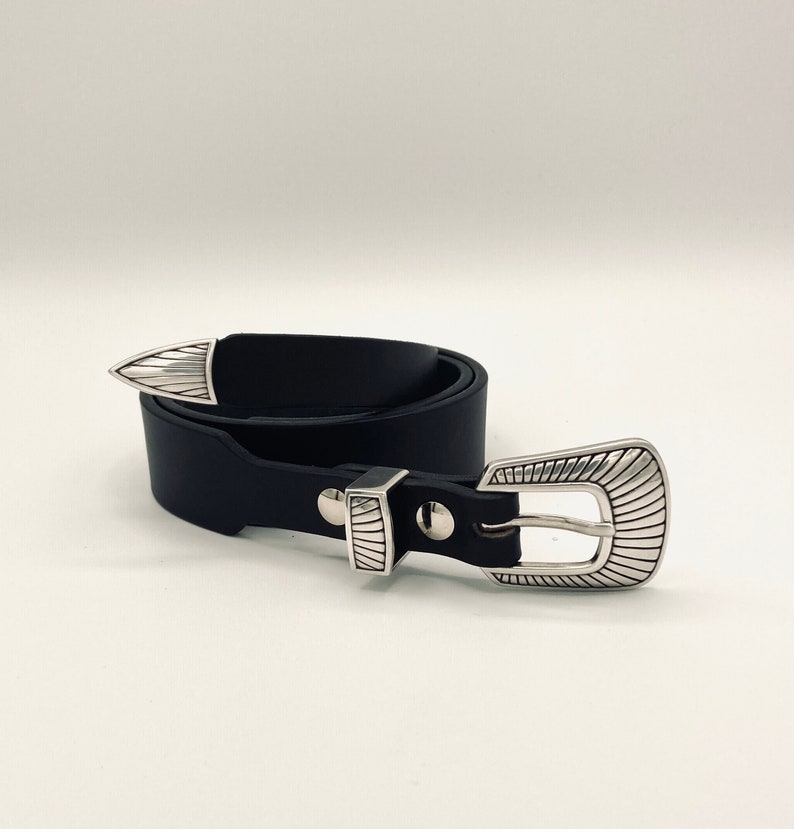 - Slim Western Belt | 1.25" tapered 0.75" Ranger | English Bridle Leather | Nickel Plated Buckles